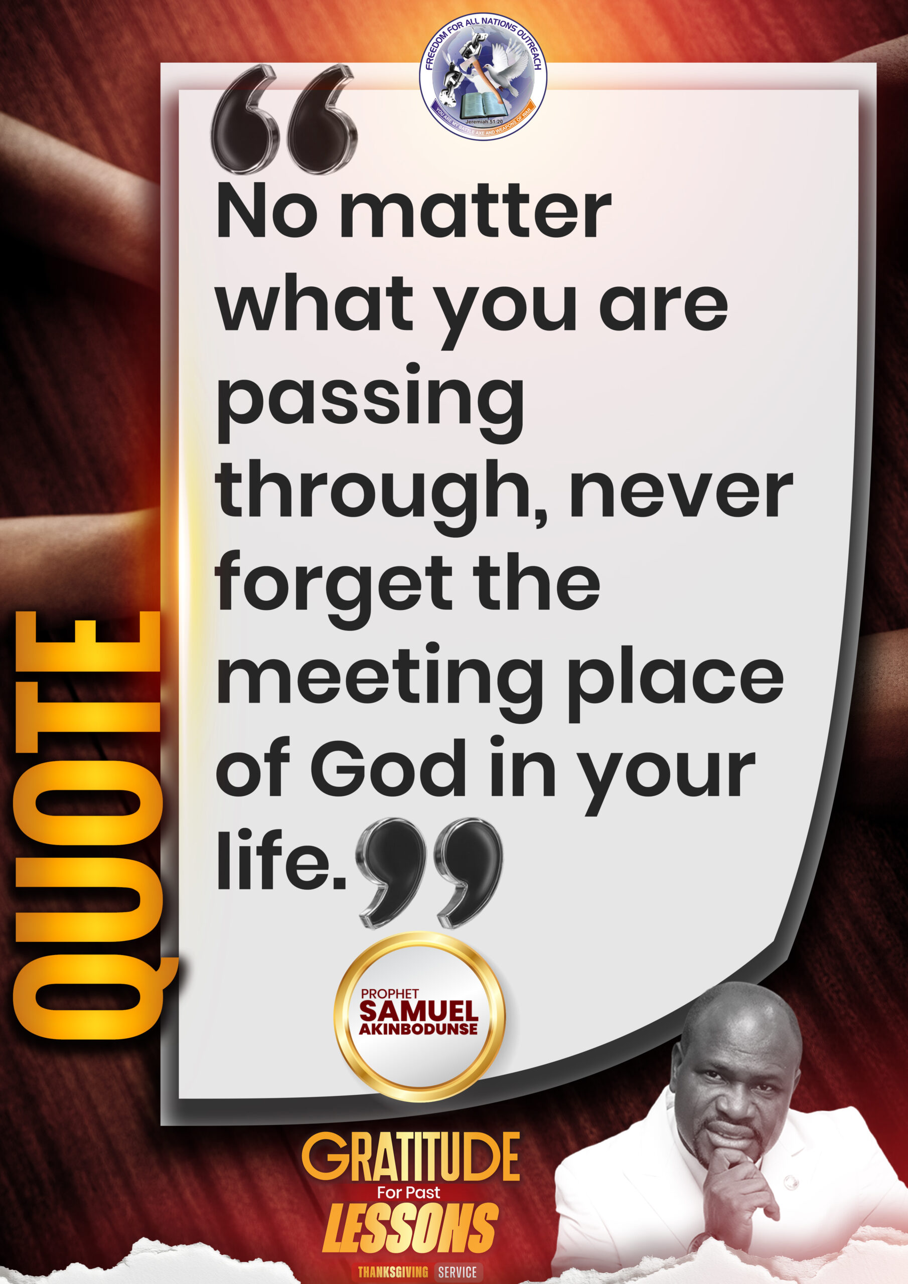 During a live service at Freedom for All Nations HQ in Pretoria, Prophet Samuel Akinbodunse emphasized the importance of gratitude for the lessons learned through life’s encounters.